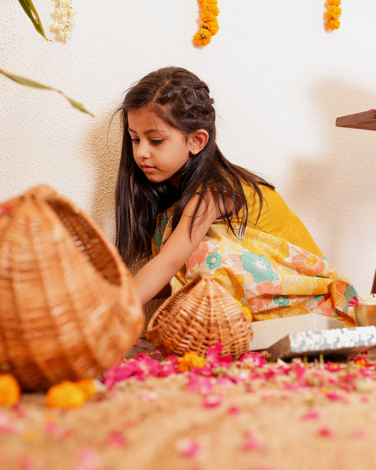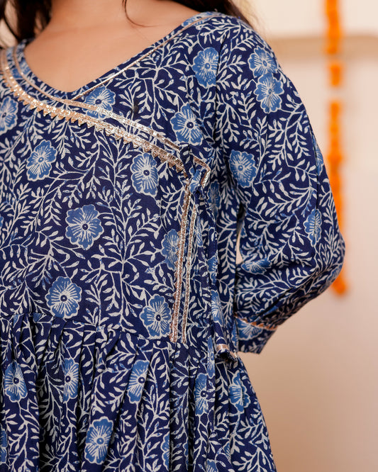 Twirl Time with Cotton Angrakha Dress for Girls - Blue | Yellow | Orange