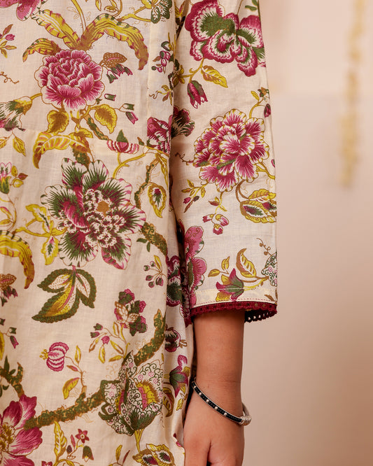 Girls Bahara Floral Off-White Magenta Kurti Sharara