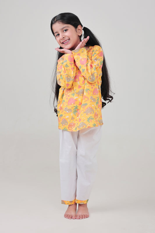 Shreeyas Cottons 100% Cotton Kids Nightwear | Yellow Dinosaur Print