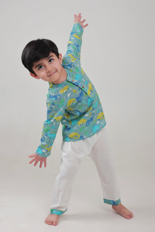 Shreeyas Cottons 100% Cotton Kids Nightwear | Blue Dinosaur Print