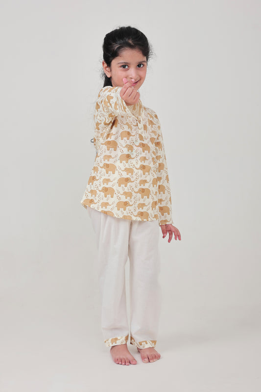 Shreeyas Cottons 100% Cotton Kids Nightwear | Yellow elephant Hathi Raja Print