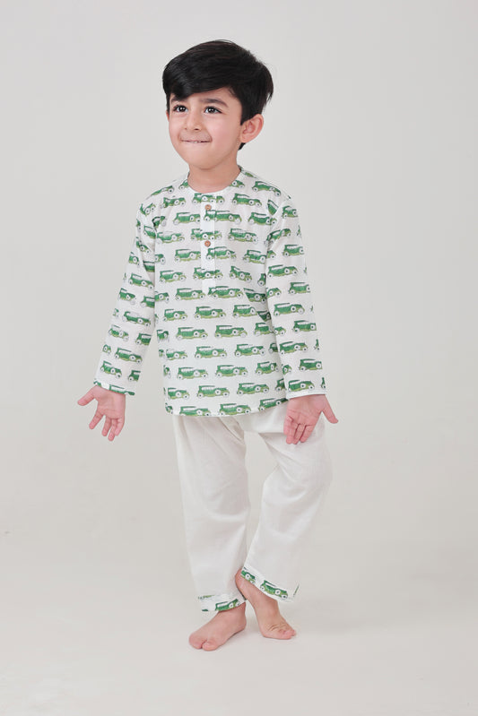 Shreeyas Cottons 100% Cotton Kids Nightwear | Green Tractor Print